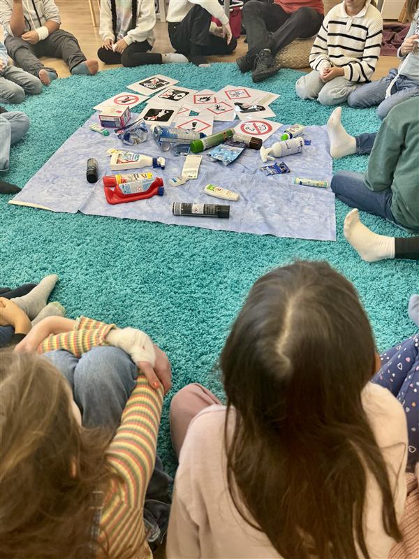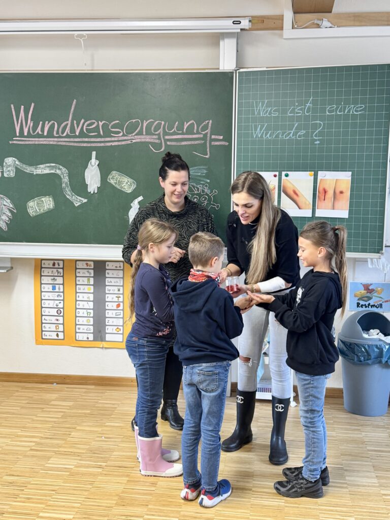 An folgenden wichtigen Stationen wurde praktisch und informativ gearbeitet: Erste Hilfe, stabile Seitenlage, Reanimation, Brandschutz, Notruf absetzen, Wundversorgung, Straßenbegehung und sicherer Schulweg, Gefahrenstoffe und Gefahren im Haushalt.