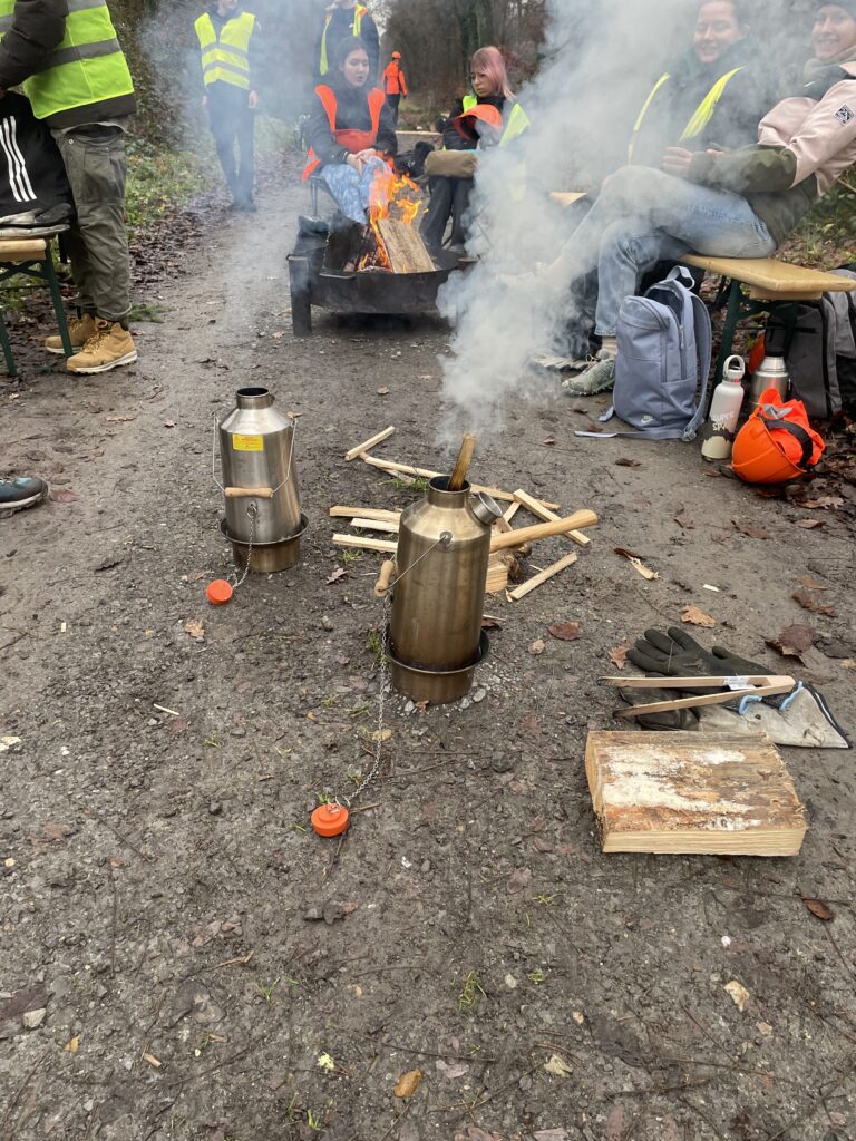 Die gefällten Stangen kommen den Pfadfindern der christlichen Gemeinde Kirrlach zugute, die sie für Zelte und andere Bauten nutzen werden. Ein Lagerfeuer in der Feuerschale und selbst gekochter Tee rundeten den Tag ab und sorgten für gemütliche Pausen an der frischen Luft.