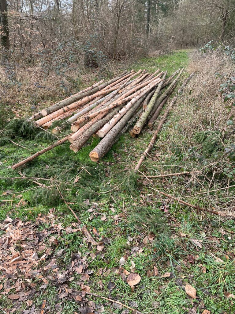 Das Schönste an diesem Projekttag: Die harte Arbeit der Jugendlichen dient einem guten Zweck. Die frisch gefällten und bearbeiteten Bäume werden zu Stangen verarbeitet, die die Pfadfinder der christlichen Gemeinde Kirrlach erhalten. Diese nutzen das Holz künftig für das Aufstellen ihrer Zelte und für traditionelle Pfadfinder-Bauten.