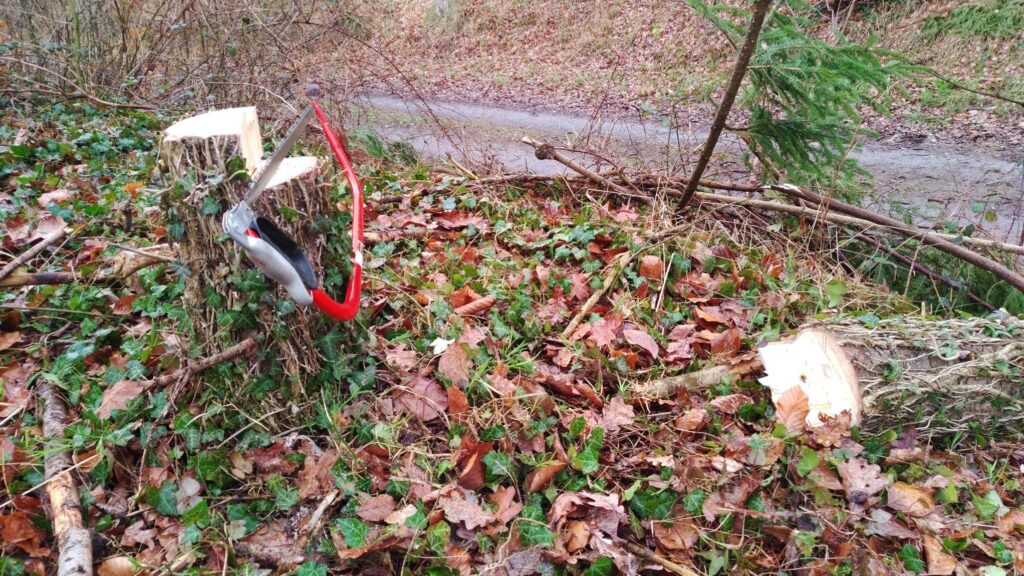 Möglich gemacht wurde dieser professionelle Einsatz durch die „Waldbox“ von ForstBW. Dieser voll ausgestattete Pkw-Anhänger brachte nicht nur die nötige Schutzkleidung, sondern auch sämtliche Werkzeuge – von verschiedenen Sägen bis hin zu Beilen und Ziehklingen – direkt an den Einsatzort.